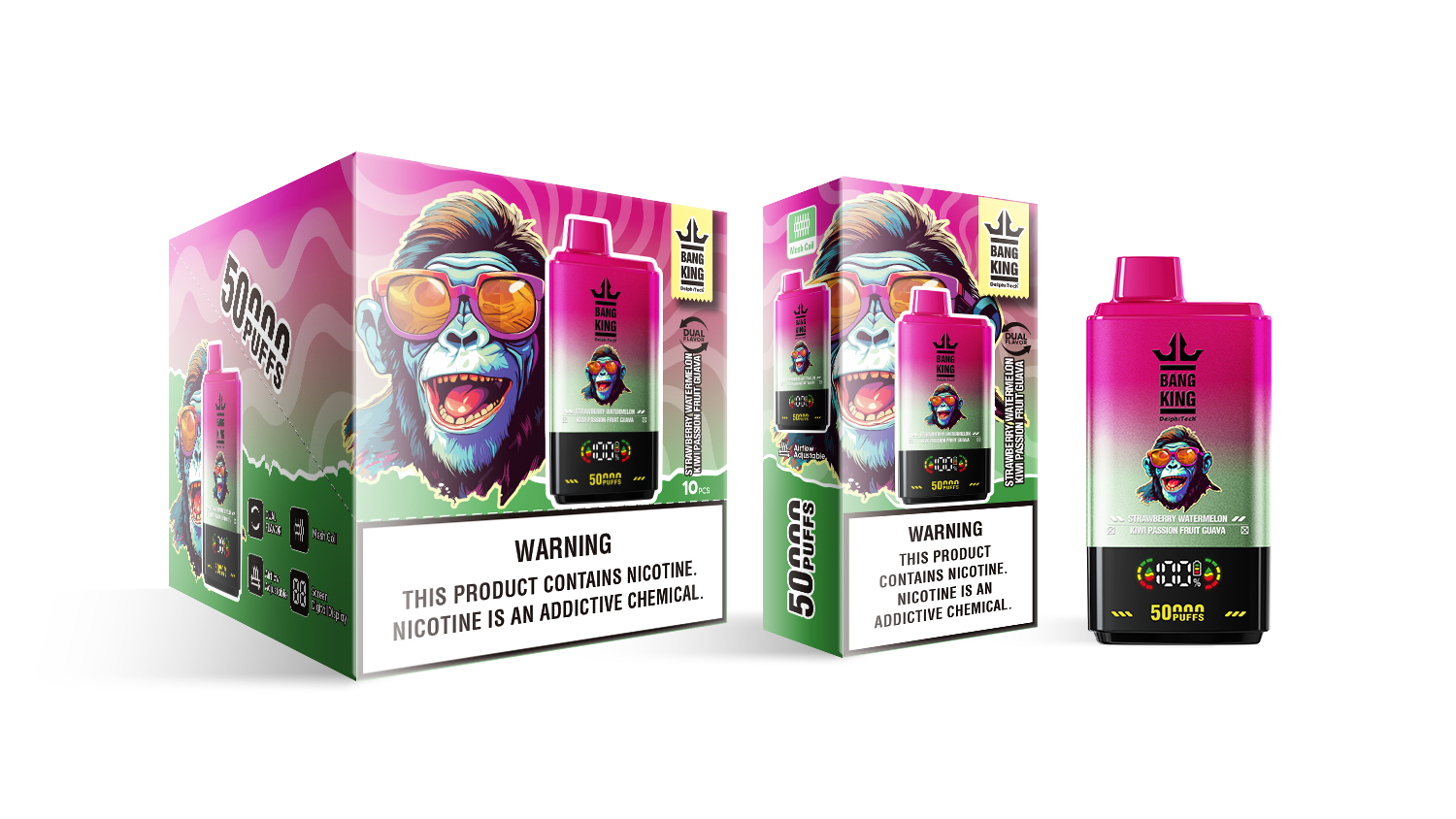Bang King 50000 Strawberry Watermelon & Kiwi Passion Fruit Guava Disposable Vape