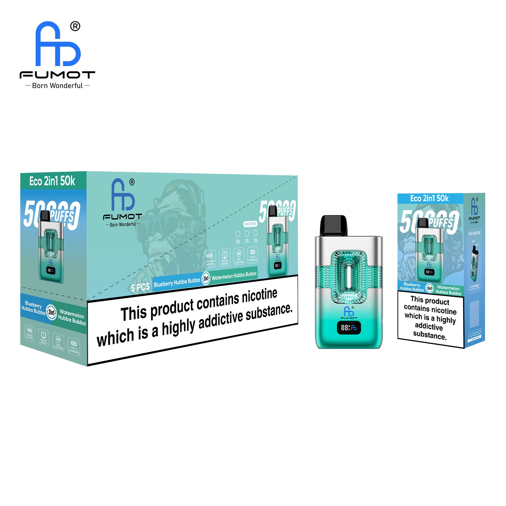 Fumot ECO 2in1 50K Blueberry Hubba Bubba & Watermelon Hubba Bubba – Technische Produktdaten: