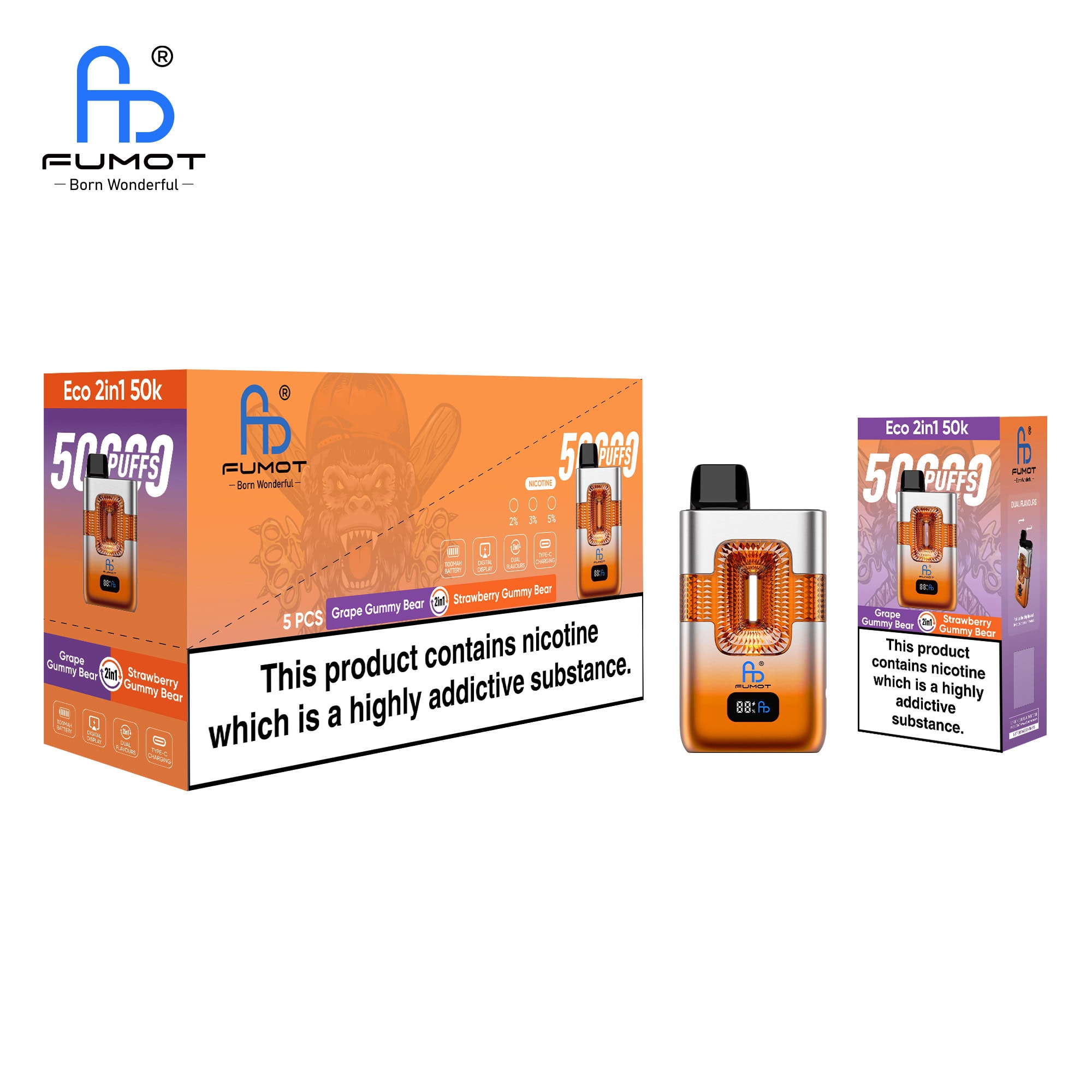 Fumot ECO 2in1 50K Grape Gummy Bear & Strawberry Gummy Bear Einweg-Vape
