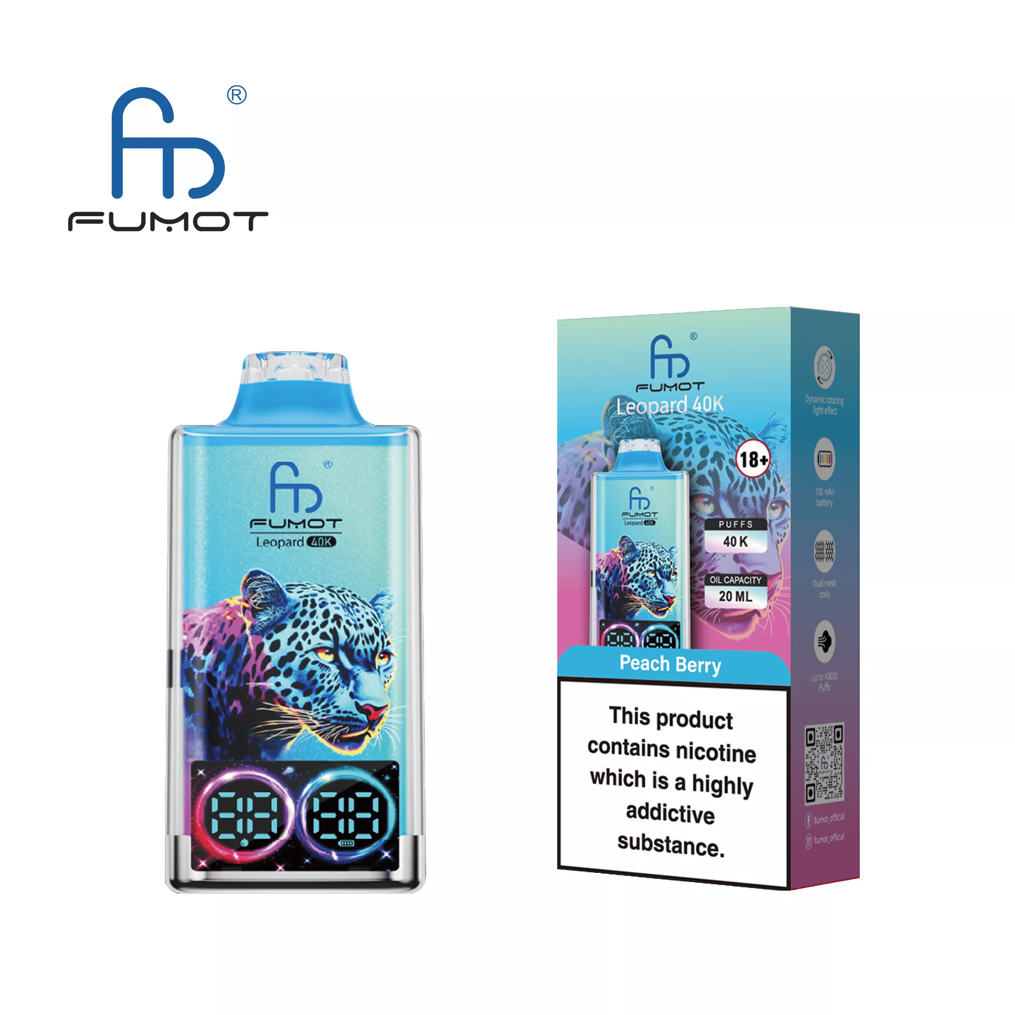 Die Fumot Leopard 40000 Peach Berry überzeugt nicht nur durch ihr Geschmacksprofil, sondern auch durch ihre technische Raffinesse und ihr unverwechselbares Erscheinungsbild. Das transparente Gehäuse mit dem markanten Leopardenmuster vereint moderne Ingenieurskunst mit einer von der Wildnis inspirierten Designsprache – ein Gerät, das Charakter hat und Stil beweist.